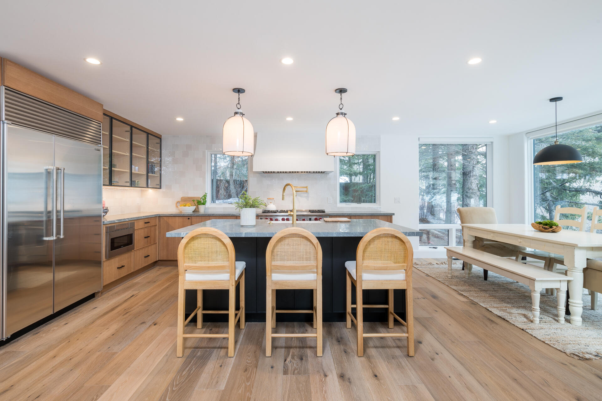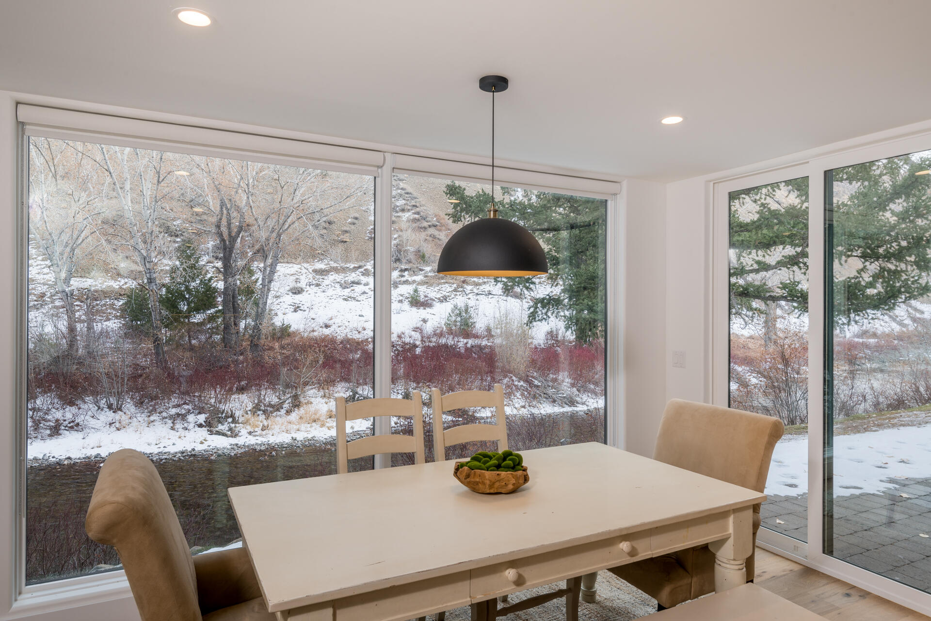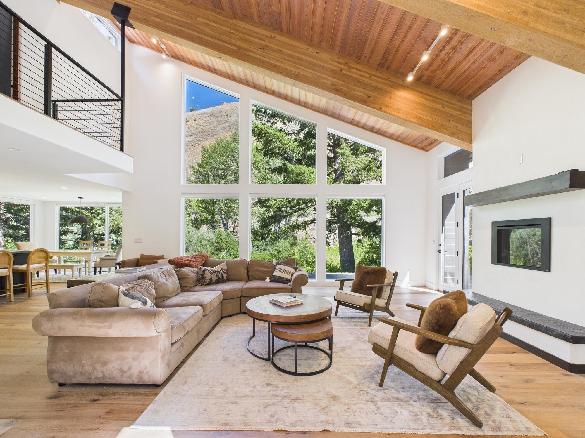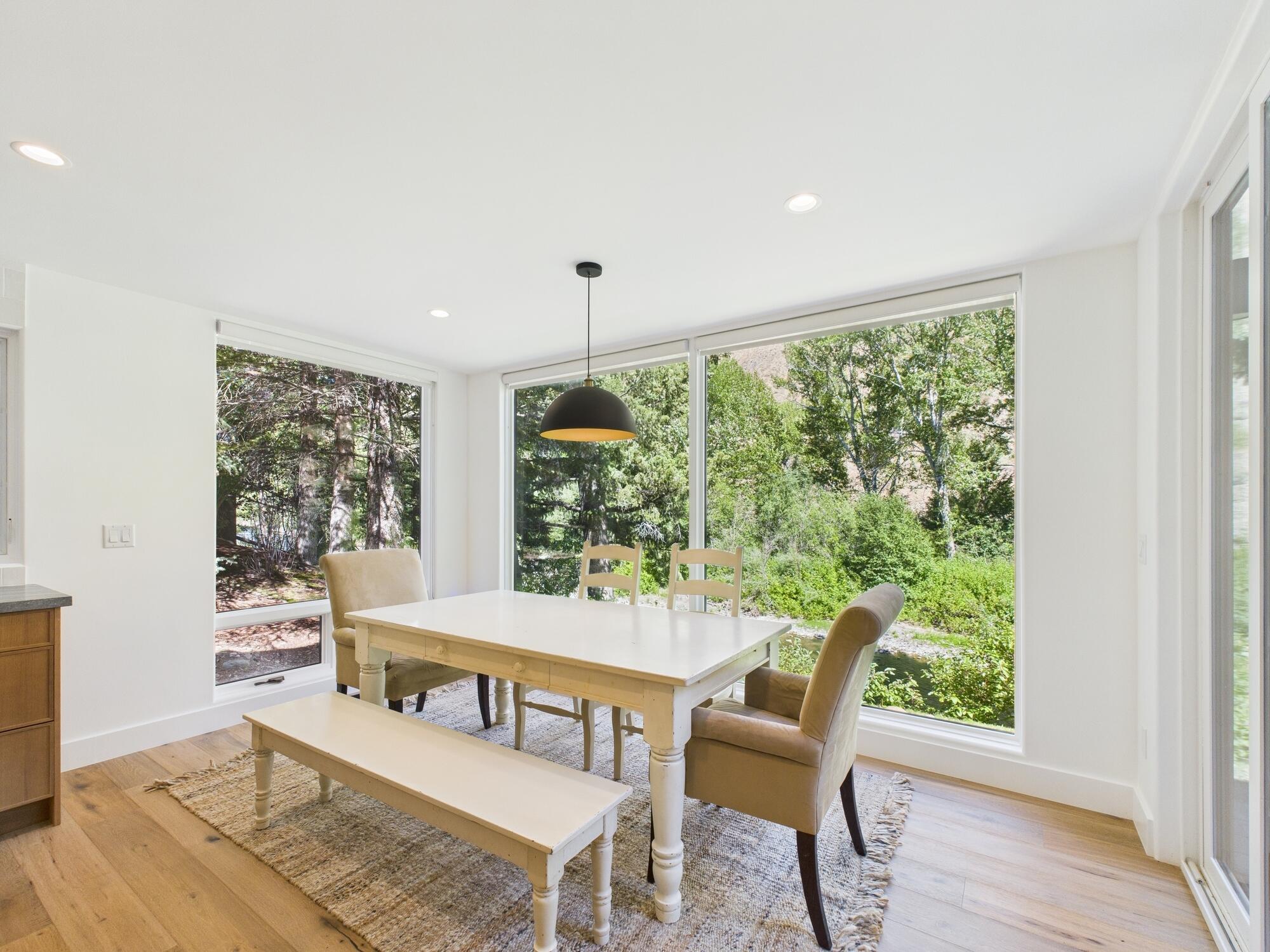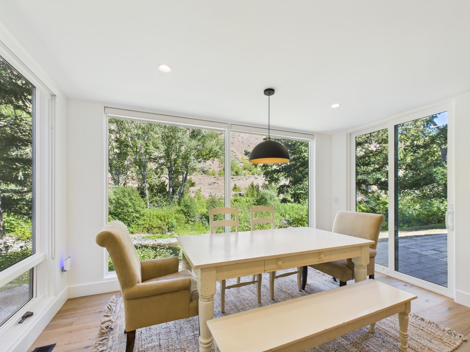 Discover the perfect balance of serenity and sophistication in this beautifully remodeled riverfront retreat, ideally located just minutes from vibrant Downtown Ketchum. Nestled in a private, tranquil setting, this 4-bedroom, 3.5-bathroom plus a flex room ideal for an office, media room, or guest overflow.