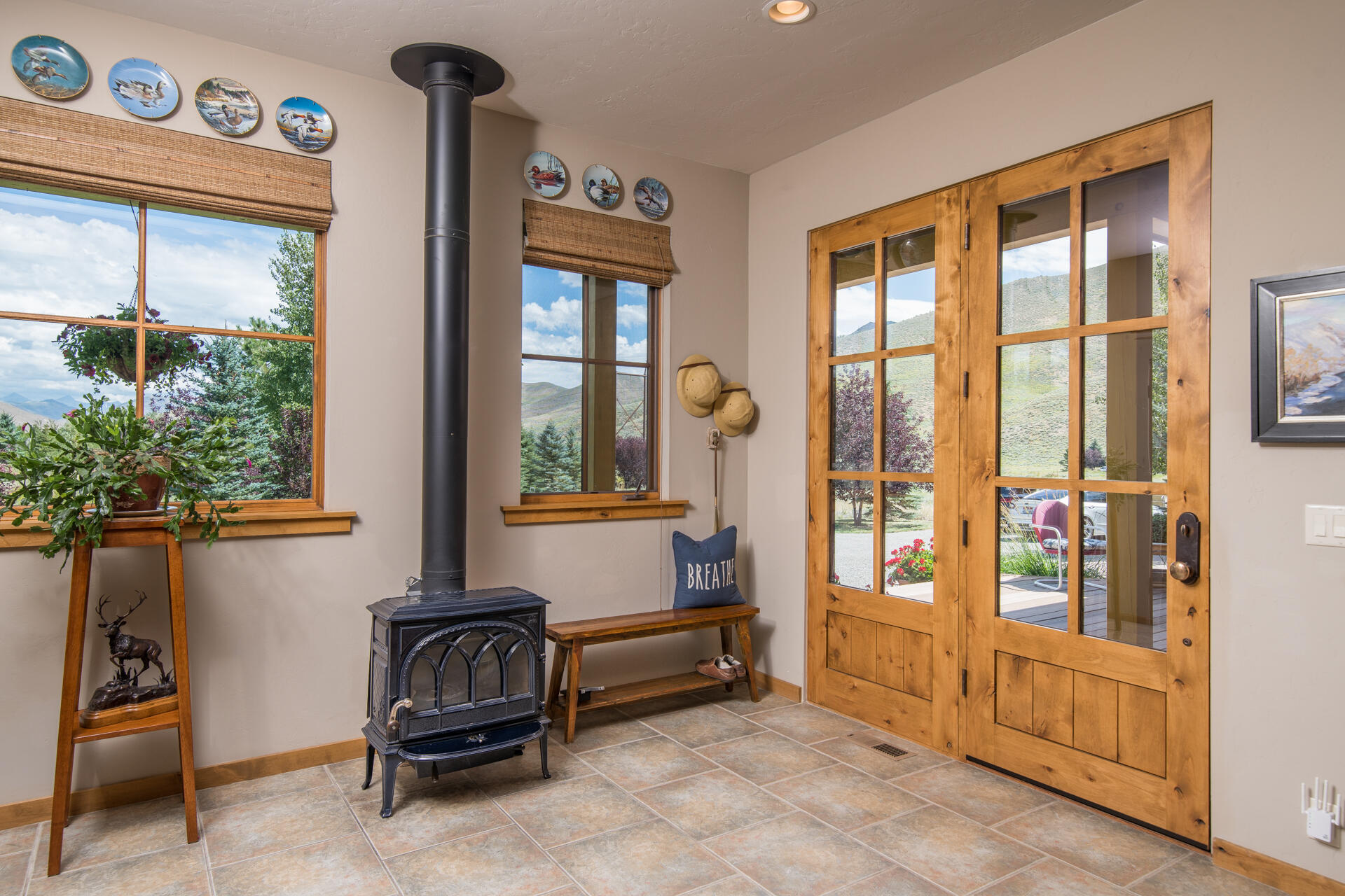 Set back on 6 acres, this inviting two-story home that has been designed with beauty and charm, flooded with natural light drawing attention to the 2 story ceilings. The fireplaces stone surround & traditional wood stove make the living room warm & cozy. Step outside and enjoy the manicured backyard or the covered front porch to enjoy the beautiful views & escape the hustle of everyday life.