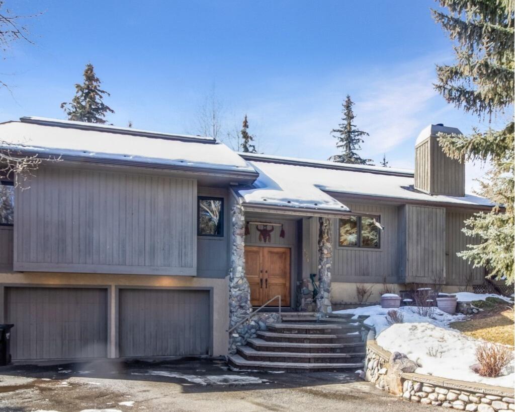 Sun filled home in park-like setting in Ketchum. Excellent location 1 block off warm springs road. Walk to main street, dog park and the trails. Minutes to Baldy. Summer community private pool. New roof in ’25. Large lot and extra parking. Deep 2 car garage. Open great room with built ins and river rock fireplace. Huge wrap around deck for outdoor living. Fenced yard. Opportunity here!