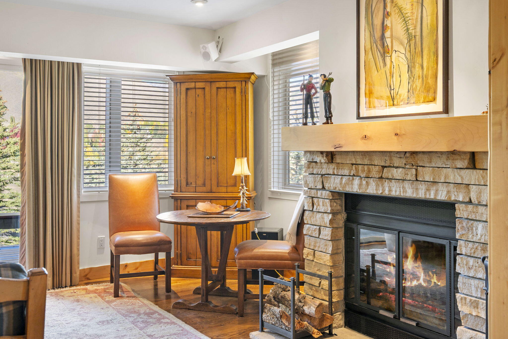 Welcome to a refined Sun Valley retreat that opens to breathtaking natural beauty. One bedroom plus a cozy bunk room provide flexible sleeping spaces. Inside, you’ll find hardwood floors, custom cabinetry, heated bathroom floors, and a wood-burning fireplace.