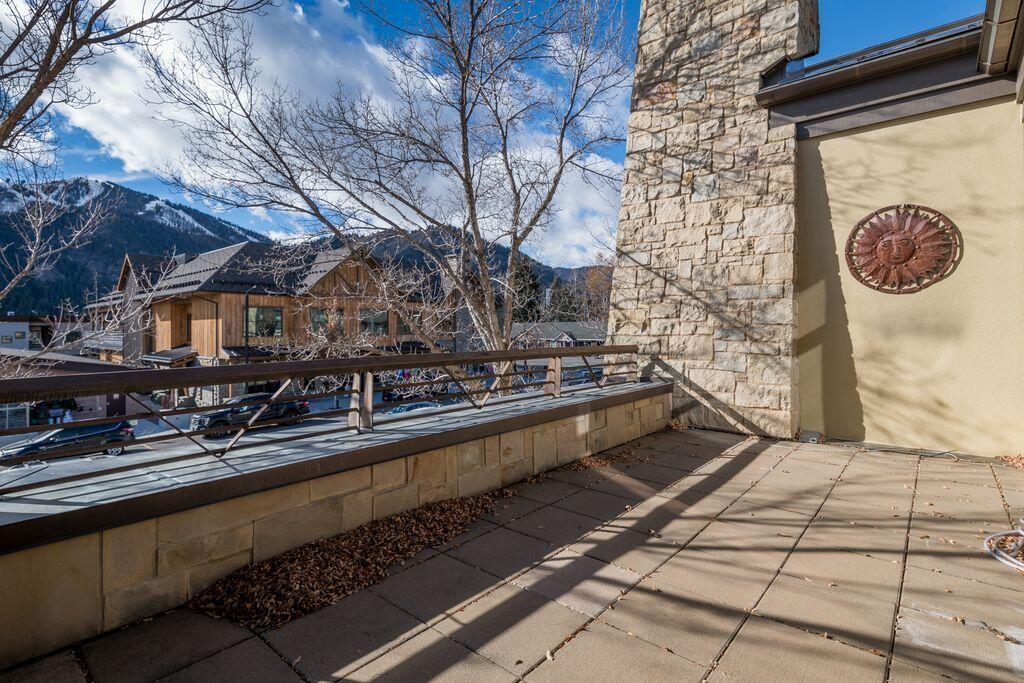 Exquisite downtown Ketchum living for this 2BR+, 3 bath unit plus a den/TV/office. Open floor plan, high ceilings in living/dining/kitchen area w tall windows facing west toward Baldy. Beautiful sunshine and sunsets! Baldy facing deck/patio. Walk to all restaurants, coffee bars, shopping, galleries, theater. Single car heated garage plus second parking space. Radiant heat in floors, upgrades!